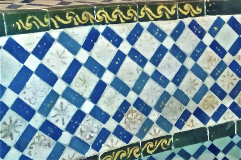 More importantly, green and white or blue and white tile sets often received a gilded decoration, applied on the walls, with no relation to the ceramic manufacturing process. These relatively fragile golden ornaments have faded over the years, but some traces remain on the Chapter House of Beja.